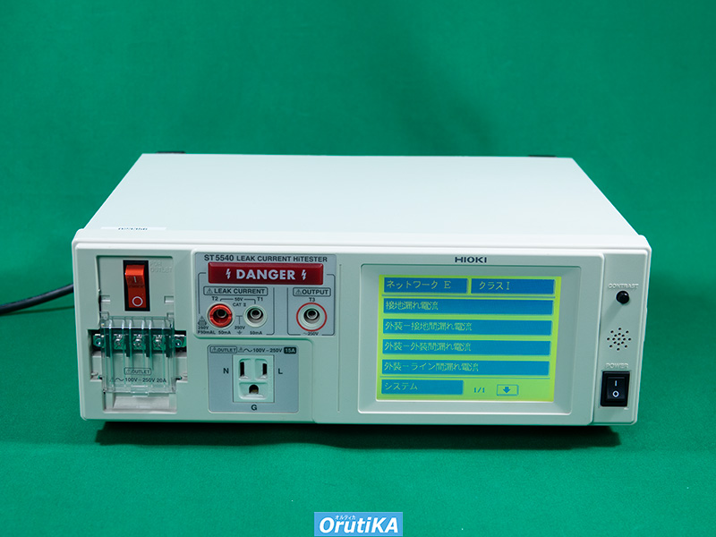測定モード・一般電機機器:外装漏れ電流(外装-ライン間) 外装漏れ電流(外装-接地間) 外装漏れ電流(外装-外装間) 接地漏れ電流・医用電気機器:外装漏れ電流(外装-接地間) 患者漏れ電流Ⅰ 患者漏れ電流Ⅱ 患者漏れ電流Ⅲ 患者測定電流・測定電流:DC/AC/AC+DC/ACpeak・許容測定最大電流:50mA(DC/AC/AC+DC) 75mA(ACpeak)・RS232C/GPIB I/F